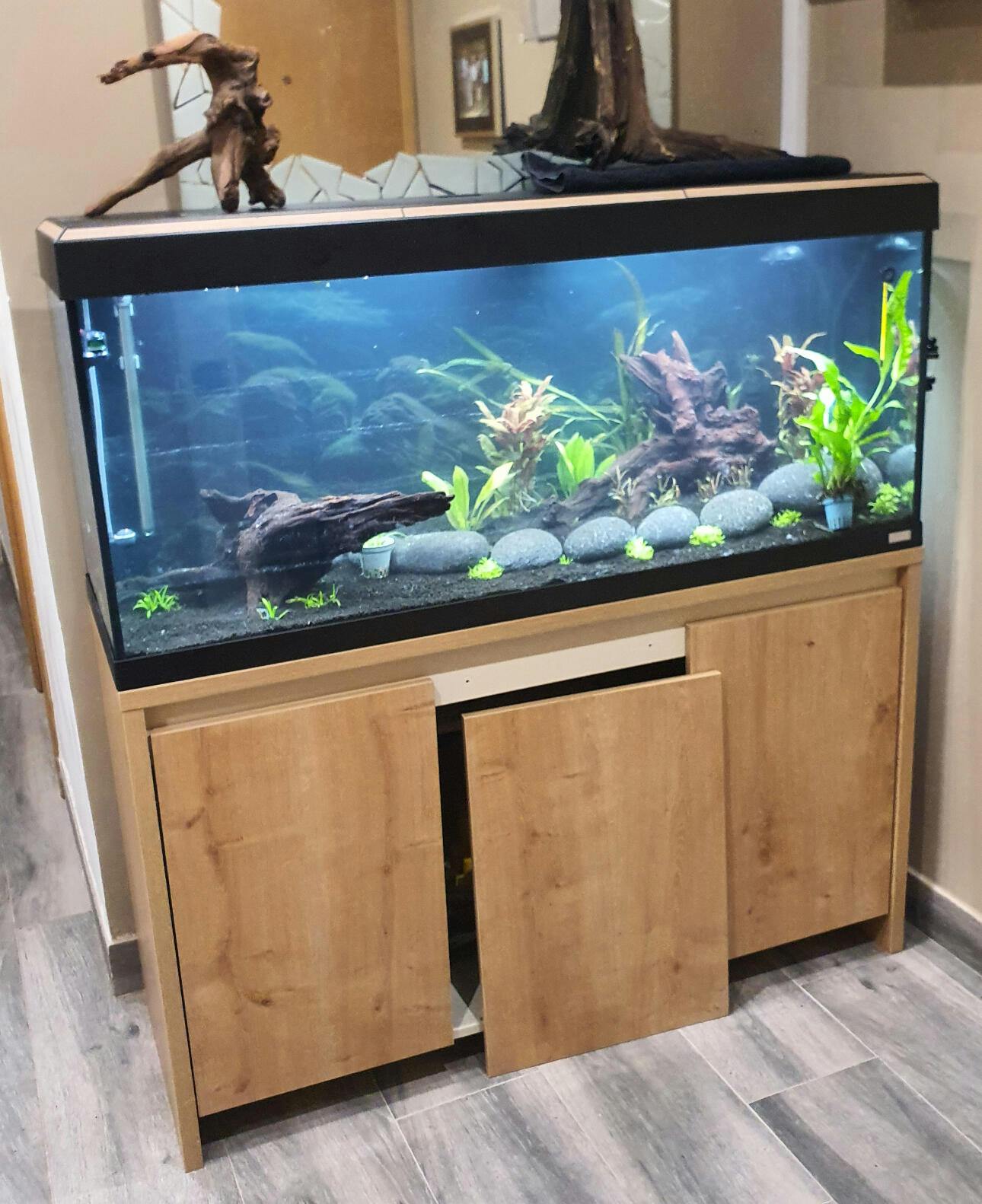 El mueble de roble que acompaña al acuario no solo le brinda un soporte resistente y duradero, sino que también añade un toque de elegancia y sofisticación a cualquier espacio. Con sus acabados de alta calidad y su diseño moderno, este mueble complementa a la perfección el estilo del acuario, creando una pieza de mobiliario que se integra de forma armoniosa en cualquier ambiente.