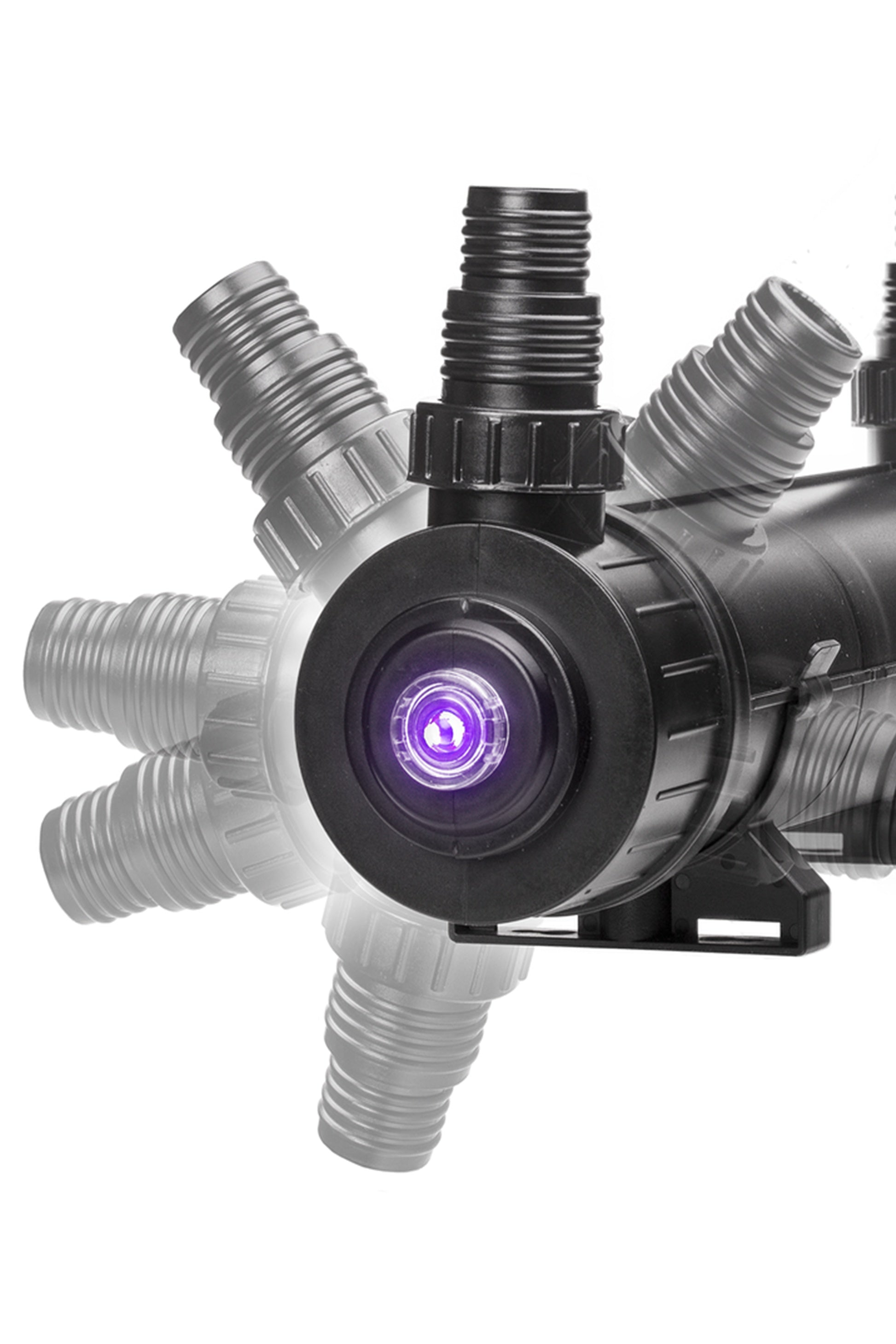 El control de funciones es simple y seguro, con una ventanilla de visualización integrada que permite monitorear el funcionamiento del dispositivo. Todas las versiones del Helix Max 2.0 de AquaMedic están equipadas con un balastro electrónico de alta frecuencia, que no solo aumenta la vida útil de las lámparas UV, sino que también mejora su eficacia. Además, el producto incluye boquillas para la conexión de mangueras, asegurando una instalación completa y eficiente.