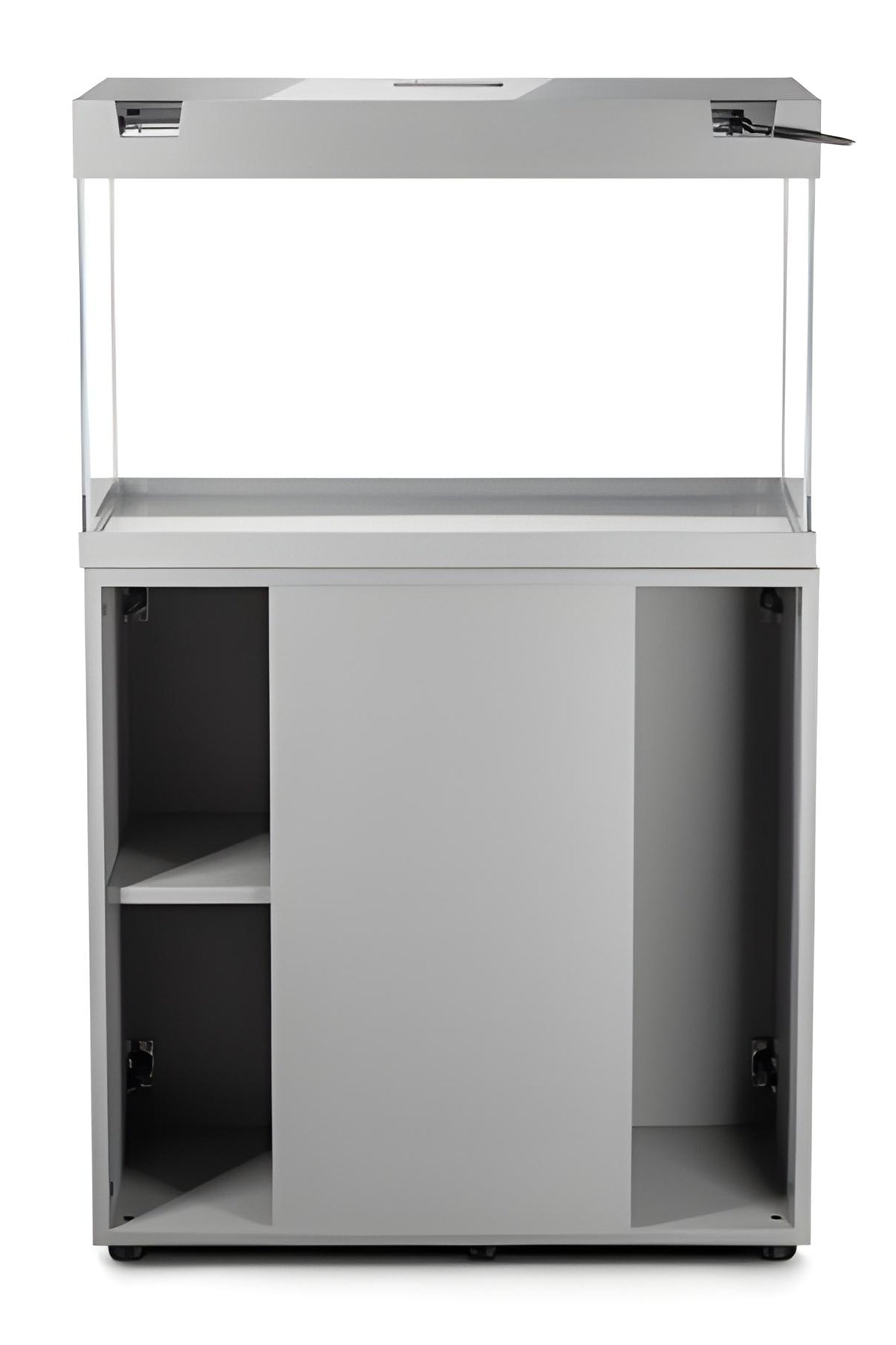 El mueble a juego está diseñado para soportar el peso del acuario de forma segura y proporcionar un espacio de almacenamiento adicional para los accesorios y productos de cuidado del acuario. Su acabado en color gris le da un aspecto moderno y elegante que se integrará fácilmente en cualquier estilo de decoración.