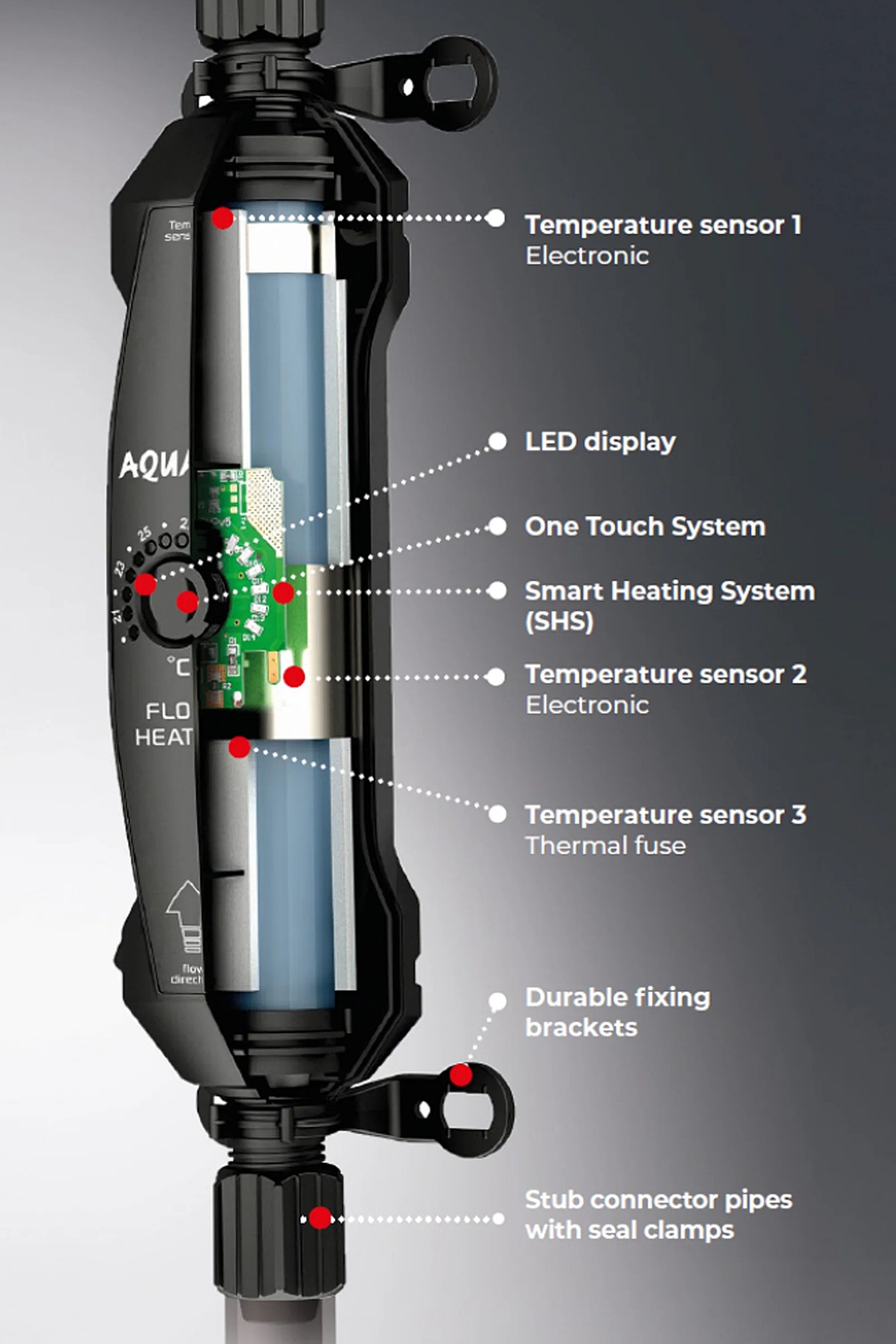 El calentador externo FLOW HEATER de AQUAEL es la solución perfecta para mantener la temperatura ideal en tu acuario. Equipado con el innovador Smart Heating System (SHS), este calentador ajusta inteligentemente su potencia para adaptarse a las necesidades específicas de tu tanque, asegurando un ambiente estable y sin fluctuaciones de temperatura que puedan estresar a tus peces y plantas.Este sistema no solo garantiza un funcionamiento eficiente, sino que también optimiza el consumo energético, utilizando solo la energía necesaria para mantener el agua a la temperatura deseada.