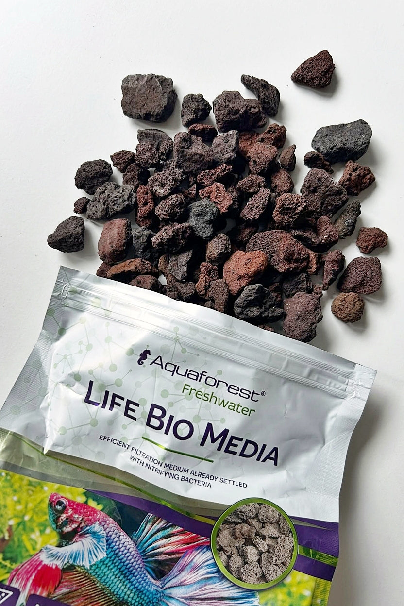 Life Bio Media de Aquaforest es un medio de filtración biológica natural diseñado para acuarios de agua dulce. Este medio ya está colonizado con bacterias seleccionadas especialmente que inician y mantienen el proceso de nitrificación, acelerando la maduración del tanque. Es perfecto para acuarios recién establecidos como medio de filtración biológica, y también aumentará la eficiencia de filtración en tanques que ya están en funcionamiento. Gracias a Life Bio Media, el proceso de nitrificación comienza casi de inmediato.