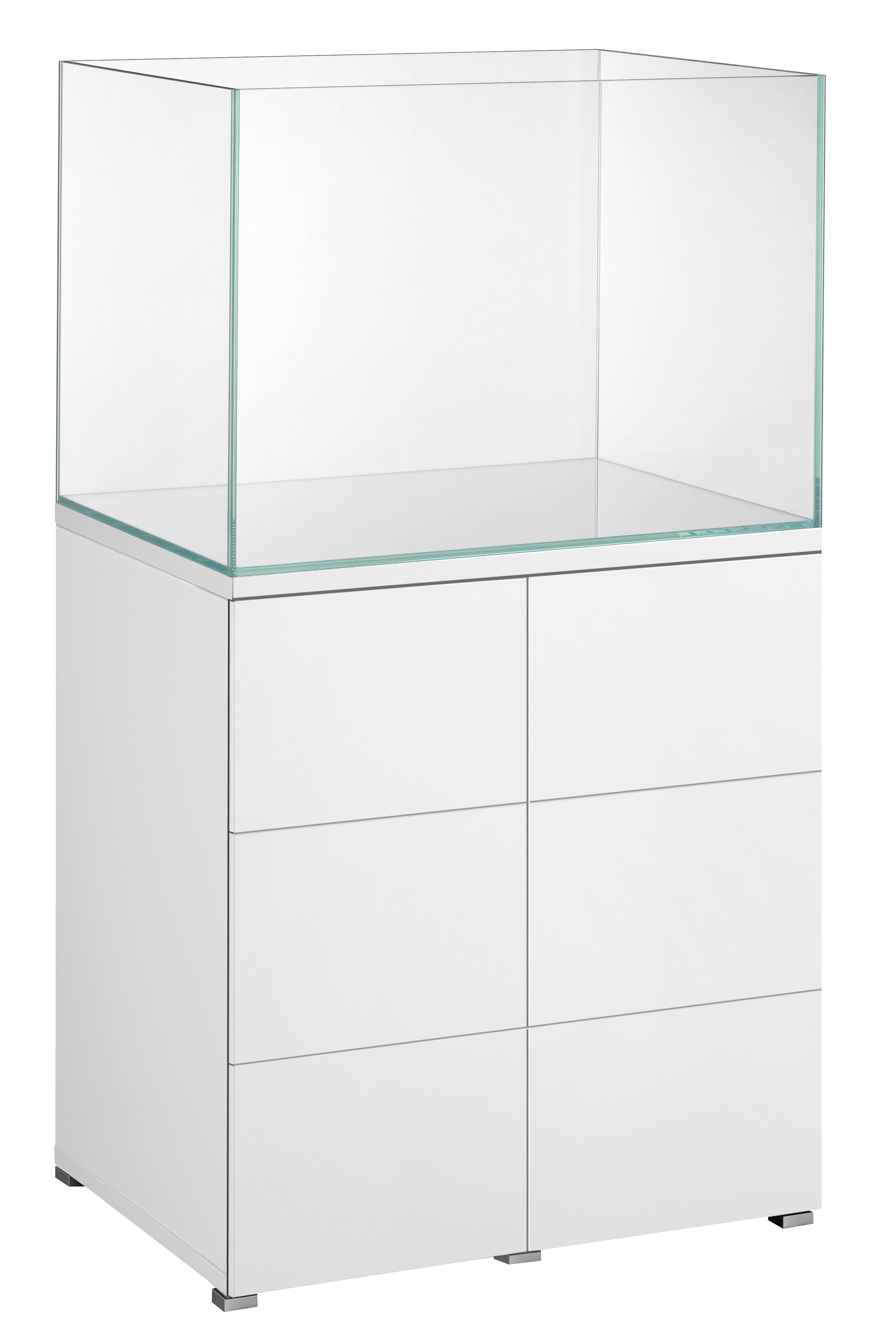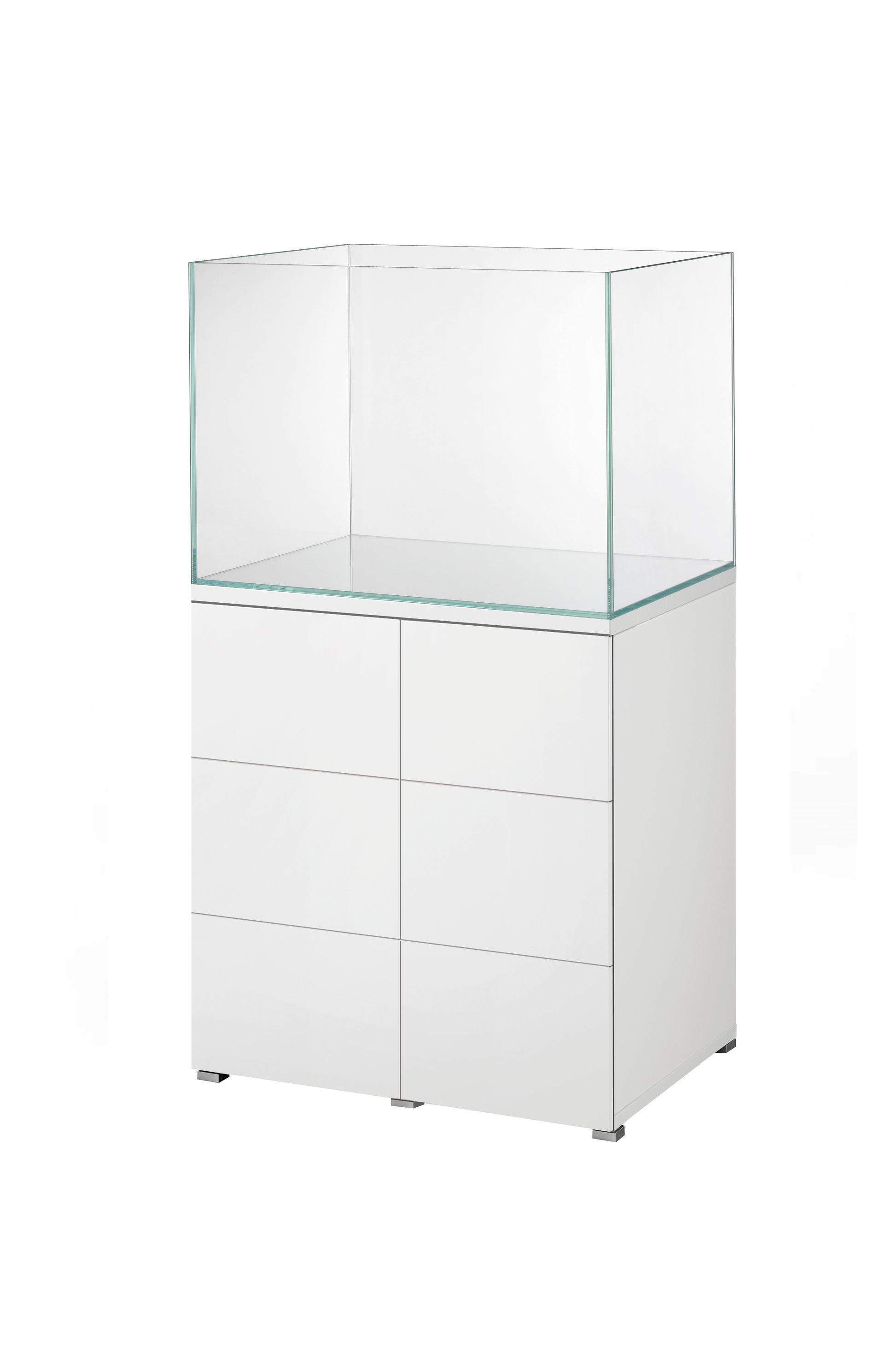 El mueble con puertas sin tirador es muy estable y ofrece mucho espacio para los filtros y accesorios. Los cables y las mangueras pueden pasar discretamente a través de la apertura en la parte trasera. Puede seleccionar la iluminación, la tecnología de filtración, etc. simplemente de nuestra amplia gama de productos.
